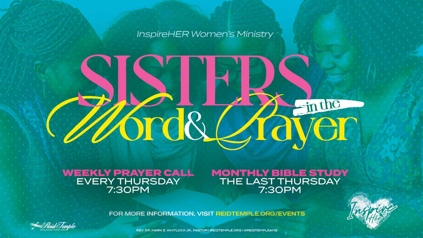 InspireHER Women’s Ministry's Sisters in the Word & Prayer is all about "Weekly Prayer Call" every Thursday at 7:30PM and "Monthly Bible Study" on the last Thursday at 7:30PM.