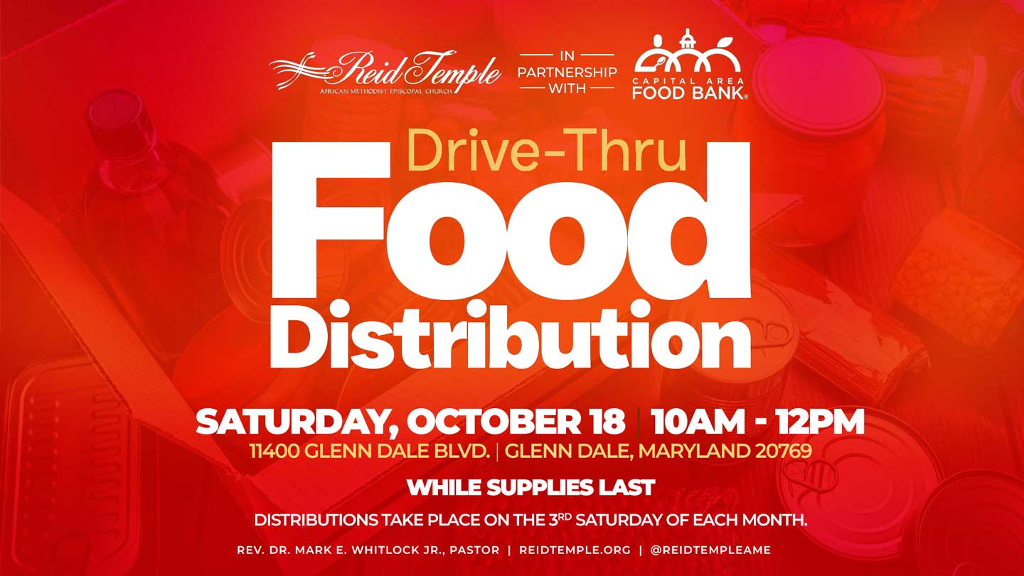 Thanks to a partnership with the Capital Area Food Bank, Reid Temple is combating food insecurity in Prince George’s County through monthly food giveaways. The next Drive-Thru Grocery Distribution at Reid Temple will be held from 10 AM to noon Saturday, October 18. Remember to arrive early–groceries will be distributed on a first-come, first-serve basis while supplies last.