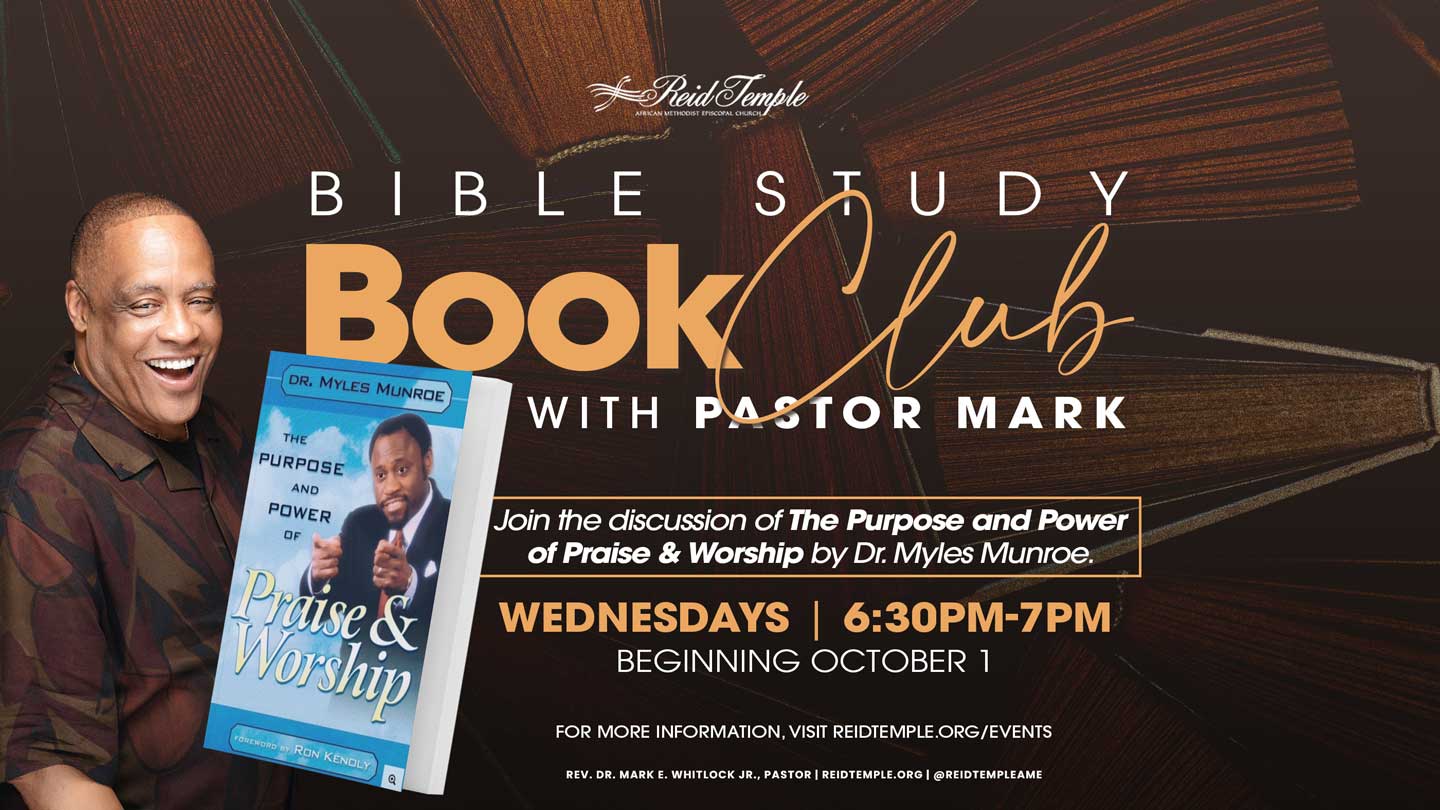 The Bible Study Book Club, a pilot program to be led by Pastor Whitlock, will start on Wednesday, October 1, 2025, from 6:30PM to 7PM. The first book selection will be The Purpose and Power of Praise & Worship by Dr. Myles Monroe. Everyone is invited. So, join us every Wednesday before Bible Study at 7PM.