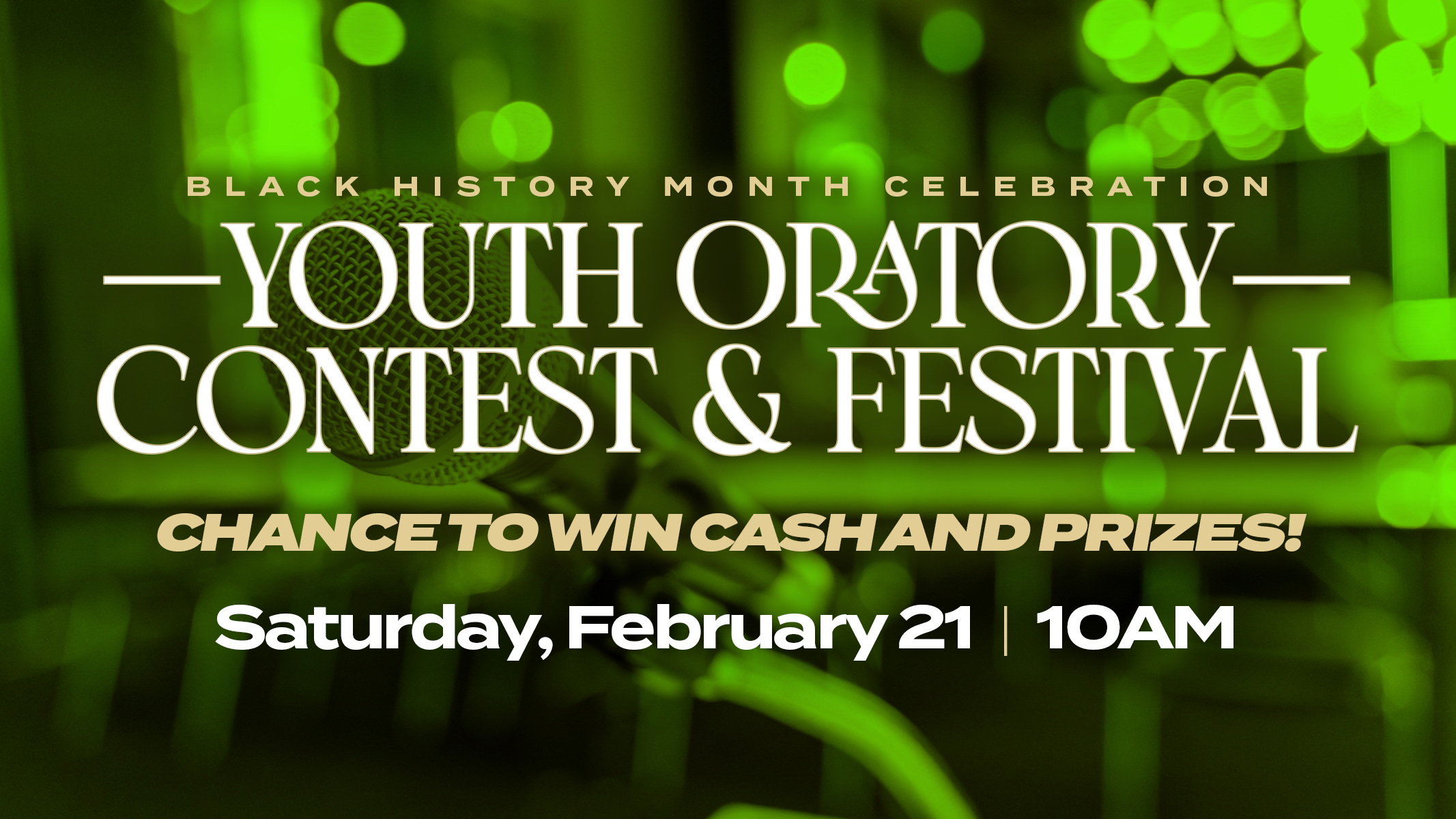 Youth Oratory Contest & Festival.This event, to include chances to win prizes, will be held on Saturday, February 21 at 10AM.